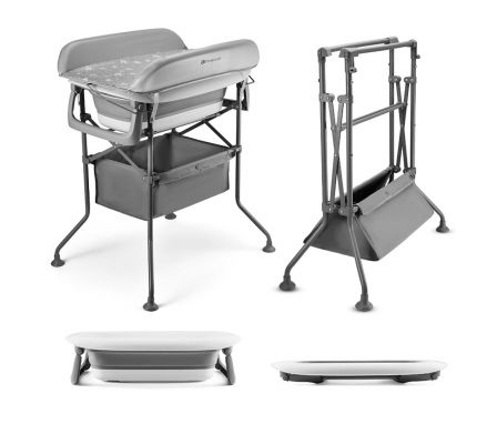 - 5 konfigurácií: samostatná vanička, vanička na stojane, vanička so stojanom a prebaľovacím pultom, samostatný pult na stojane alebo zavesený na boku