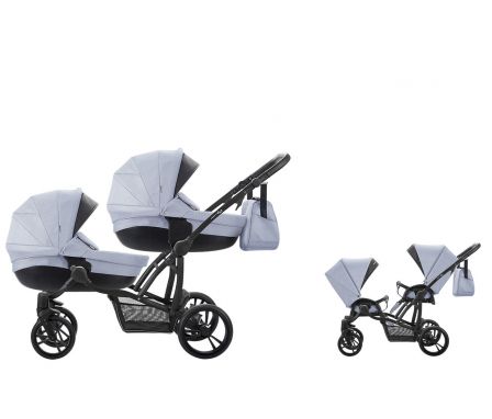 Bebetto 42 - dvojičkový kočík s tandemovým osadením vaničiek. S použitím predných otočných kolies sa úzka konštrukcia kočíka jednoducho ovláda aj v preplnených mestách alebo tesných uličkách obchodov.
