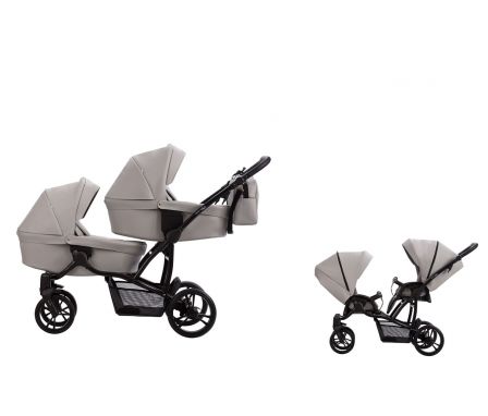 Bebetto 42 Pro je moderný kočík pre dvojičky navrhnutý tak, aby poskytoval výnimočný komfort a štýlový vzhľad. Tandemové uporiadanie vaničiek alebo sedačiek umožňuje pohodlné ovládanie kočíka a zároveň poskytuje každému dieťaťu dostatok priestoru. Vďaka modernej konštrukcii sú hlboké vaničky priestranné a vážia len 3,1 kg. Súčasťou balenia je aj bohatá výbava, ktorá umožní bezproblémové používanie kočíka za akýchkoľvek podmienok. V kolekcii Pro sú vonkajšie poťahy kočíka z ekokože.
