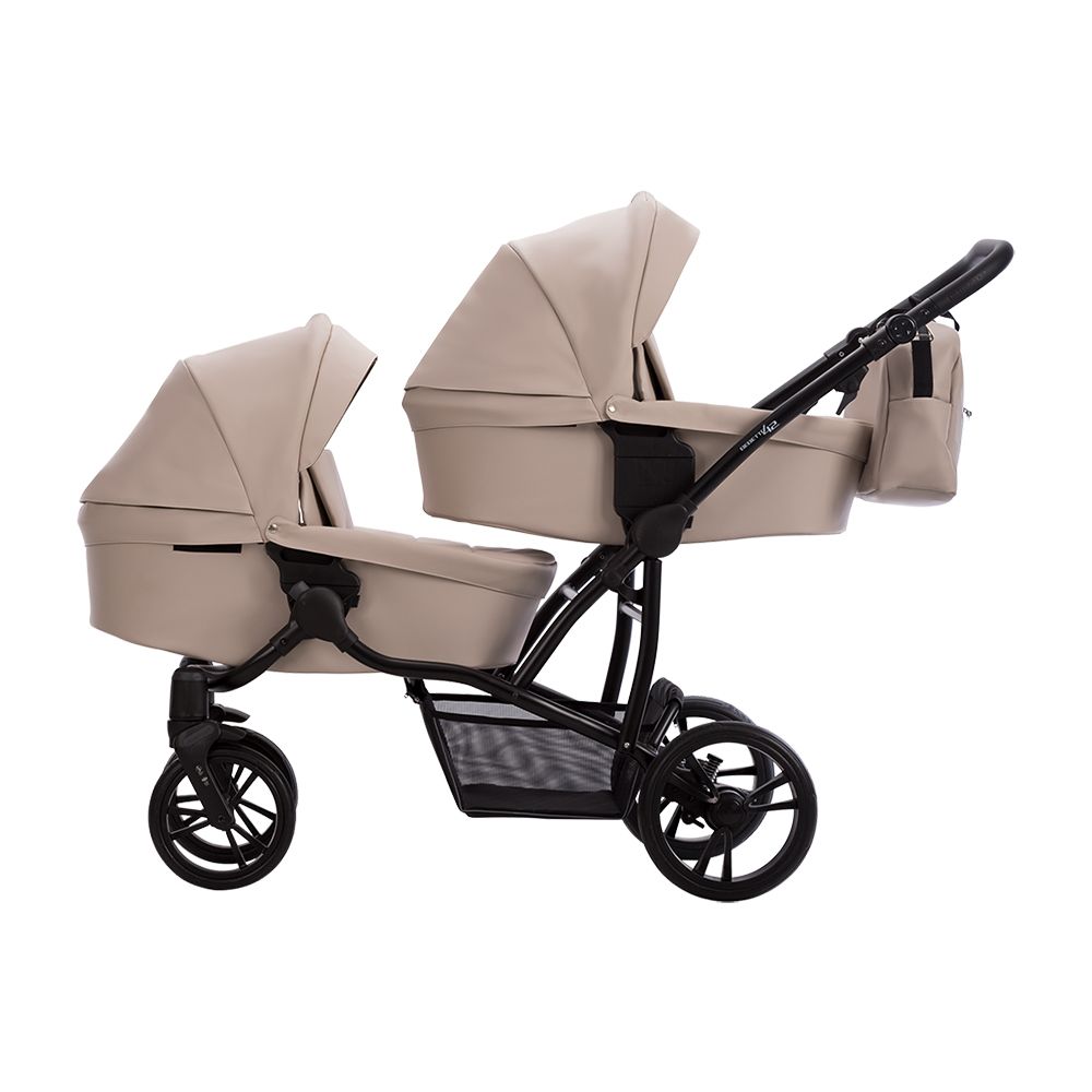 Bebetto 42 Pro je moderný kočík pre dvojičky navrhnutý tak, aby poskytoval výnimočný komfort a štýlový vzhľad. Tandemové uporiadanie vaničiek alebo sedačiek umožňuje pohodlné ovládanie kočíka a zároveň poskytuje každému dieťaťu dostatok priestoru. Vďaka modernej konštrukcii sú hlboké vaničky priestranné a vážia len 3,1 kg. Súčasťou balenia je aj bohatá výbava, ktorá umožní bezproblémové používanie kočíka za akýchkoľvek podmienok. V kolekcii Pro sú vonkajšie poťahy kočíka z ekokože.