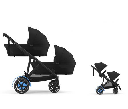 Twin set obsahuje konštrukciu, 2x športovú sedačku a 2x hlbokú vaničku Gazelle S Cot, vďaka čomu je možné Gazelle S využívať ako dvojičkový kočík už od narodenia.