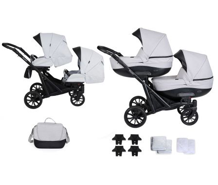 Booster je praktický kočík pre dvojičky v moderných farebných kombináciách s detailmi z ekokože. Vybavený modernou a ľahkou konštrukciou s jednoduchým systémom skladania, na ktorú môžete osadiť dve vaničky, športové sedačky, autosedačky alebo rôzne kombinácie podľa veku a potrieb vaších detí.