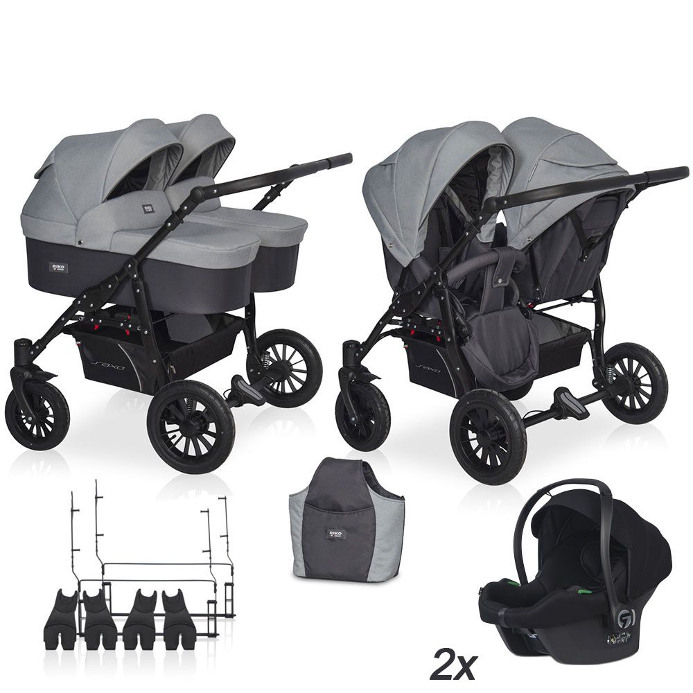 Kolekcia kočíkov Riko Basic ponúka kompletné vybavenie za výhodnú cenu pri zachovaní všetkých funkcií a kvality spoločnosti Riko. Saxo predstavuje ekonomické riešenie pre rodičov s dvojnásobnou radosťou. Napriek atraktínej cene ponúka tento dvojičkový kočík dve plnohodnotné vaničky a športové sedačky. Osadenie vaničiek vedľa seba ponúka komfortný prístup k obom deťom a jednoduché ovládanie za akýchkoľvek podmienok. Set s dvoma i-Size autosedačkami Cosmo umožní plnohodnotné používanie kočíka aj počas cestovania.