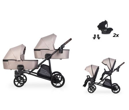 Riko Musso je kočík pre dvojičky alebo súrodencov s malým vekovým rozdielom. Tandemová konštrukcia umožňuje až 16 rôznych konfigurácií športových sedačiek, vaničiek alebo autosedačiek. Ku kočíku je možné dokúpiť aj výškové adaptéry, ktoré ešte zväčšia vzdialenosť medzi vaničkami pre ešte pohodlnejší prístup k dieťaťu. Set s 2x i-Size autosedačkami Cosmo umožní plnohodnotné používanie kočíka aj počas cestovania.