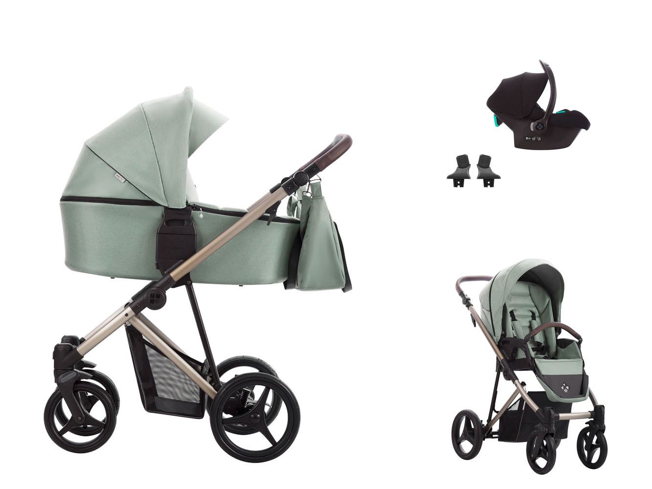 - osadenie na kočík pomocou adaptérov, ktoré sú súčasťou balenia