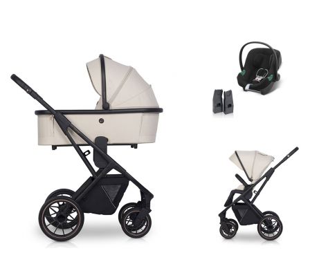 Obľúbený model Axo v novej kolekcii Shine sa vyznačuje látkami v jemných pastelových farbách doplnených o leskú niť. Kočík je vybavený nastaviteľnou rukoväťou, priestrannejšou športovou sedačkou a teleskopickou opierkou nôh pre celkovú dĺžku až 93 cm. Kolekcia Shine je dostupná v štyroch prevedeniach: champagne (golden beige), flamingo (discrete salmon pink), boho green (ceramic green), a french grey (shades of grey). Set s priestrannou hlbokou vaničkou High a kvalitnou i-Size autosedačkou Cybex Aton B2 s adaptérmi.