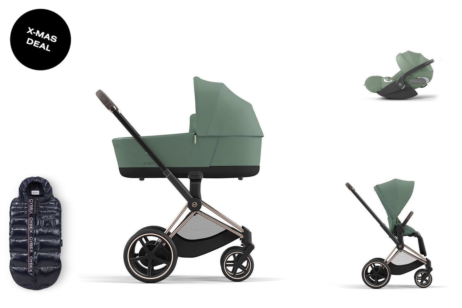 CYBEX e-Priam Travel Set + Cloud T Plus i-Size + Platinum Winter Footmuff