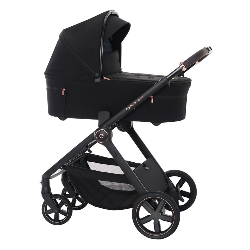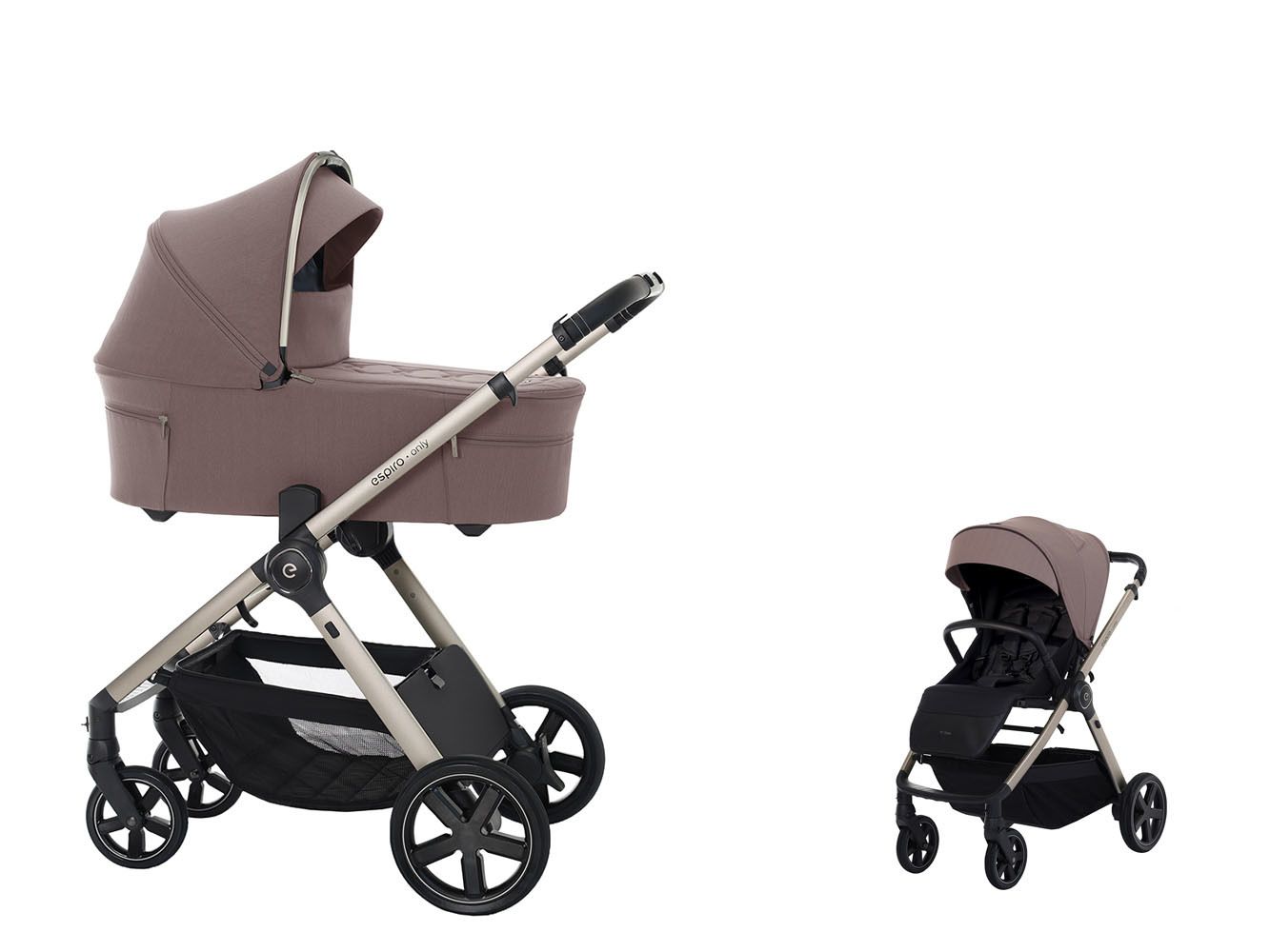 Konštrukcia Espiro Only Športová sedačka + nánožník Hlboká vanička + nánožník Taška pre rodiča s prebaľovacou podložkou Panel HOT&COOL 2x pláštenka (vanička, sedačka) Integrované moskytiéry Bambusový matrac Držiak na nápoje Výškové adaptéry pre vaničku