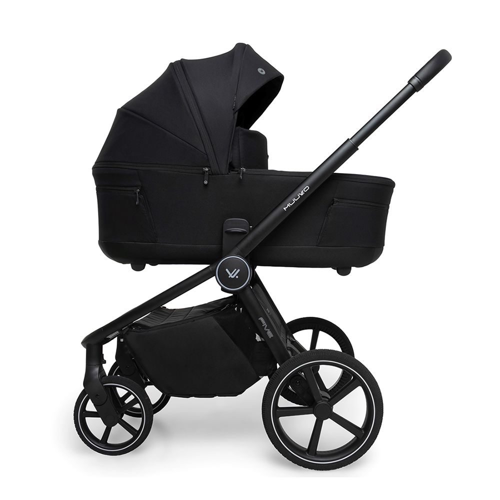 Muuvo Five je moderný kočík, ktorý spája elegantný dizajn s praktickými riešeniami uľahčujúcimi každodenný život rodičov. Inovatívne, do konštrukcie zabudované adaptéry s trojstupňovým nastavením umožňujú umiestniť vaničku alebo športovú časť v pohodlnej výške pre rodiča. Priestranná vanička s konštrukciou z ľahkého EPP materiálu poskytuje skvelú izoláciu a maximálne pohodlie už od prvých dní života dieťaťa. Nové poťahy s hydrofóbnou úpravou a filtrom UPF50 chránia pri nepriaznivom počasí a zároveň pred škodlivými slenčnými lúčmi. Ventilačné panely sa starajú o optimálnu cirkuláciu vzduchu, vďaka čomu má dieťa vždy príjemné podmienky na spánok a oddych.