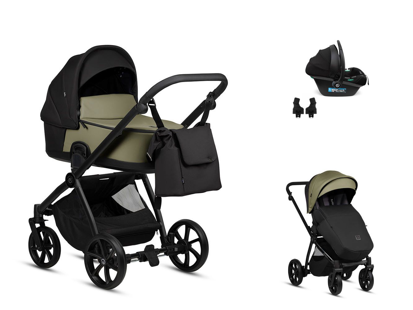 Konštrukcia Hlboká vanička (Leather) Športová sedačka (Leather) Autosedačka Elo i-Size Adaptéry Ruksak (Leather) Pláštenka Sieťka proti hmyzu Držiak na nápoje 2× nánožník
