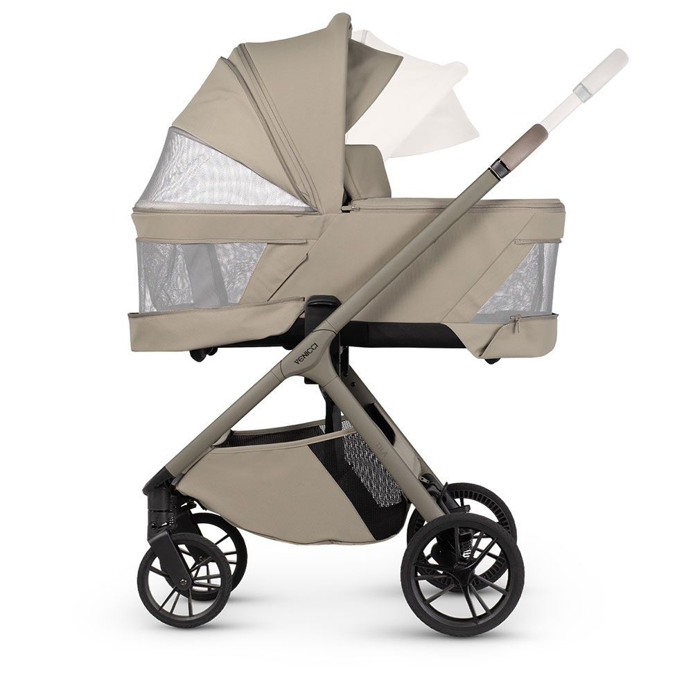 VENICCI Tila je úzka, ľahká a maximálne štýlová – ideálny kočík do mesta. Systém Up2Go umožňuje zložiť vaničku spolu s konštrukciou jedným pohybom, čo uľahčuje každodennú manipuláciu. V tejto verzii je súčasťou balenia aj autosedačka Venicci Tiago i-Size s adaptérmi, vďaka čomu môžete Tilu používať ako praktický cestovný set od narodenia.