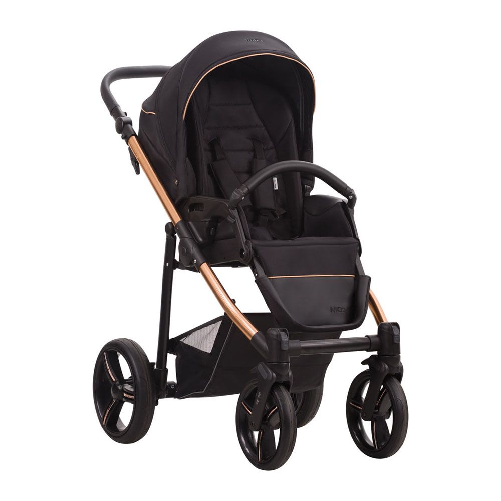 Hľadáte kočík, ktorý poskytne vášmu dieťaťu pohodlie bez ohľadu na počasie? Vyberte si Nico Estilo Pro vybavené fusakom a množstvom funkčných riešení, ktoré uľahčia používanie kočíka. Jedinečný štýl zaistí kombinácia bielej alebo čiernej ekokože s lesklou medenou konštrukciou. Súčasťou balenia je aj štýlova prebaľovacia taška z ekokože.
