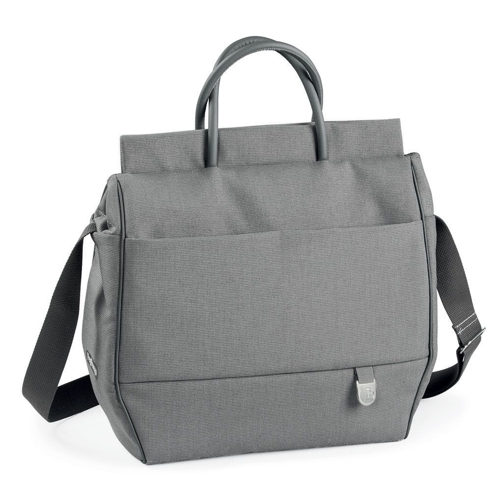 Originálna taška ku kočíkom Peg Perego! Taška je vybavená praktickou prebaľovacou podložkou, ktorú možno kdekoľvek rozložiť. Vonkajšie vrecko na zips je perfektné pre hračky, detské obrúsky alebo váš telefón. Peg-Perego tašky sú vyrobené z odolných látok v štýlových farbách, vďaka ktorým ich môžete, v kombinácii s dodávaným ramenným pásom, používať aj bez kočíka. Na kočík je tašku možné zavesiť pomocou 2 karabín.