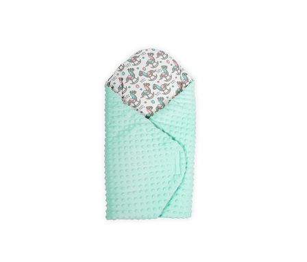 Spevnená zavinovačka s hojdacími koníkmi pre sladký a pokojný spánok v kombinácii s farebnou minky textíliou.