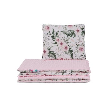Mäkká súprava s veľkou prikrývkou vhodná do postieľky, kolísky alebo aj kočíka. Jedna strana je vyrobená z minky textílie, ktorá je výnimočne mäkká a jemná na dotyk. Jej trojrozmerná štruktúra dokonale zaisťuje tepelný komfort. Druhá strana deky je zo 100% bavlny s certifikátom Oeko-Tex Standard 100. Výplň je z ľahkých silikónových antialergických vlákien.