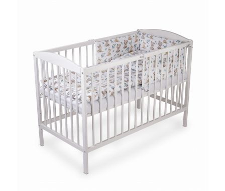 Súprava do postieľky s motívom rozkošného macka a malej srnky. Set Mini s menším paplónom a obliečkou je ideálnym riešením pre malé postieľky.