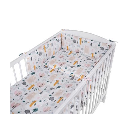 Súprava do postieľky s lesom plným pomarančovníka a milých zvieratiek. Set Mini s menším paplónom a obliečkou je ideálnym riešením pre malé postieľky.
