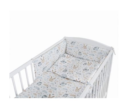 Súprava do postieľky s lesným motívom sovy a zajačika. Set Mini s menším paplónom a obliečkou je ideálnym riešením pre malé postieľky.