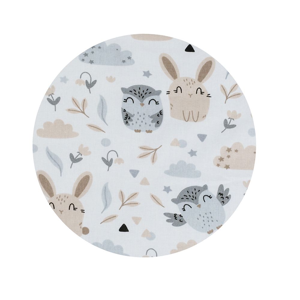 Súprava do postieľky s lesným motívom sovy a zajačika. Set Mini s menším paplónom a obliečkou je ideálnym riešením pre malé postieľky.