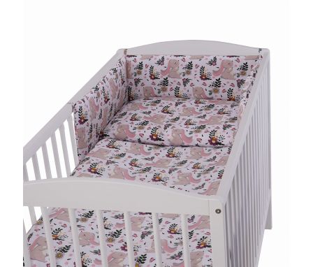 Súprava do postieľky so zajačikom na lúke plnej kvetov pre krásne sny vašej princezny. Set Mini s menším paplónom a obliečkou je ideálnym riešením pre malé postieľky.