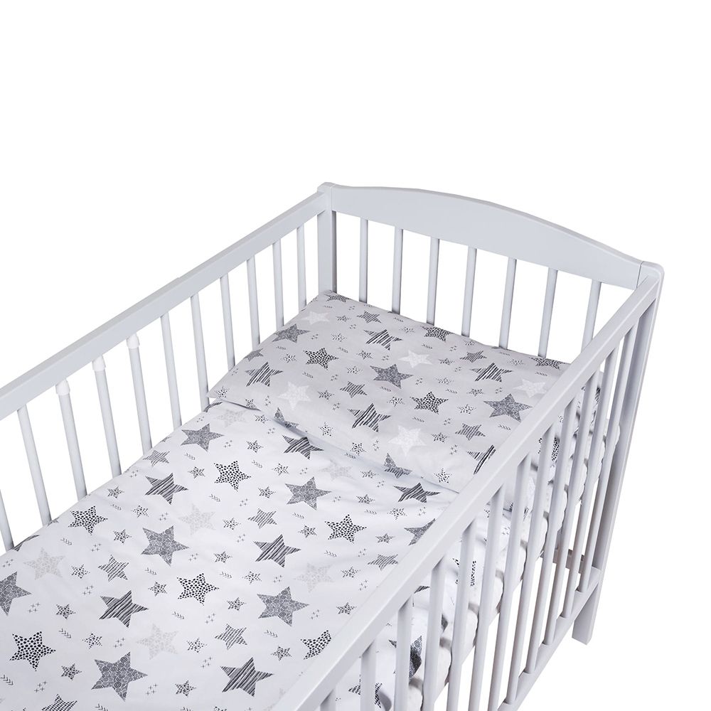 Súprava do postieľky so sivými hviezdami rôznych veľkostí pre spánok plný najkrajších snov.