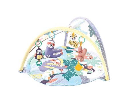 Interaktívna deka aktivity rozvíja zábavnou formou schopnosti a zručnosti vášho dieťatka. Ležiace bábätko upútajú visiace hračky, ktoré ho motivujú siahať po nich. Dieťa tak trénuje psychomotoriku. Pre upokojenie si môžete zahrať peknú melódiu z niektorej zo závesných hračiek. Súčasťou podložky aktivity je tvarovaný vankúšik.