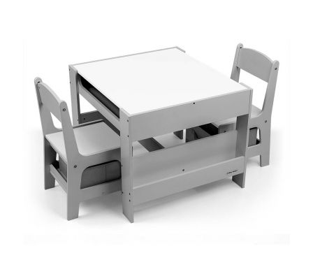 Súprava multifunkčného nábytku Sven poskytne pohodlie a priestor pre tvorivé hranie, maľovanie alebo písanie. Súprava obsahuje 2 stoličky s 2 textilnými úložnými organizérmi, ktoré sú uložené v poličke pod stoličkami. Stôl je vybavený úložnou priehradkou umiestnenou pod obojstranne odnímateľnou stolovou doskou. Jedna strana dosky stola je veľká tabuľa na kreslenie. Stoličky sú ľahké a deti s nimi môžu voľne pohybovať. Nábytok je vyrobený s mimoriadnou presnosťou a starostlivosťou. Obe stoličky majú zaoblené rohy, ktoré chránia vaše dieťa pred zraneniami.